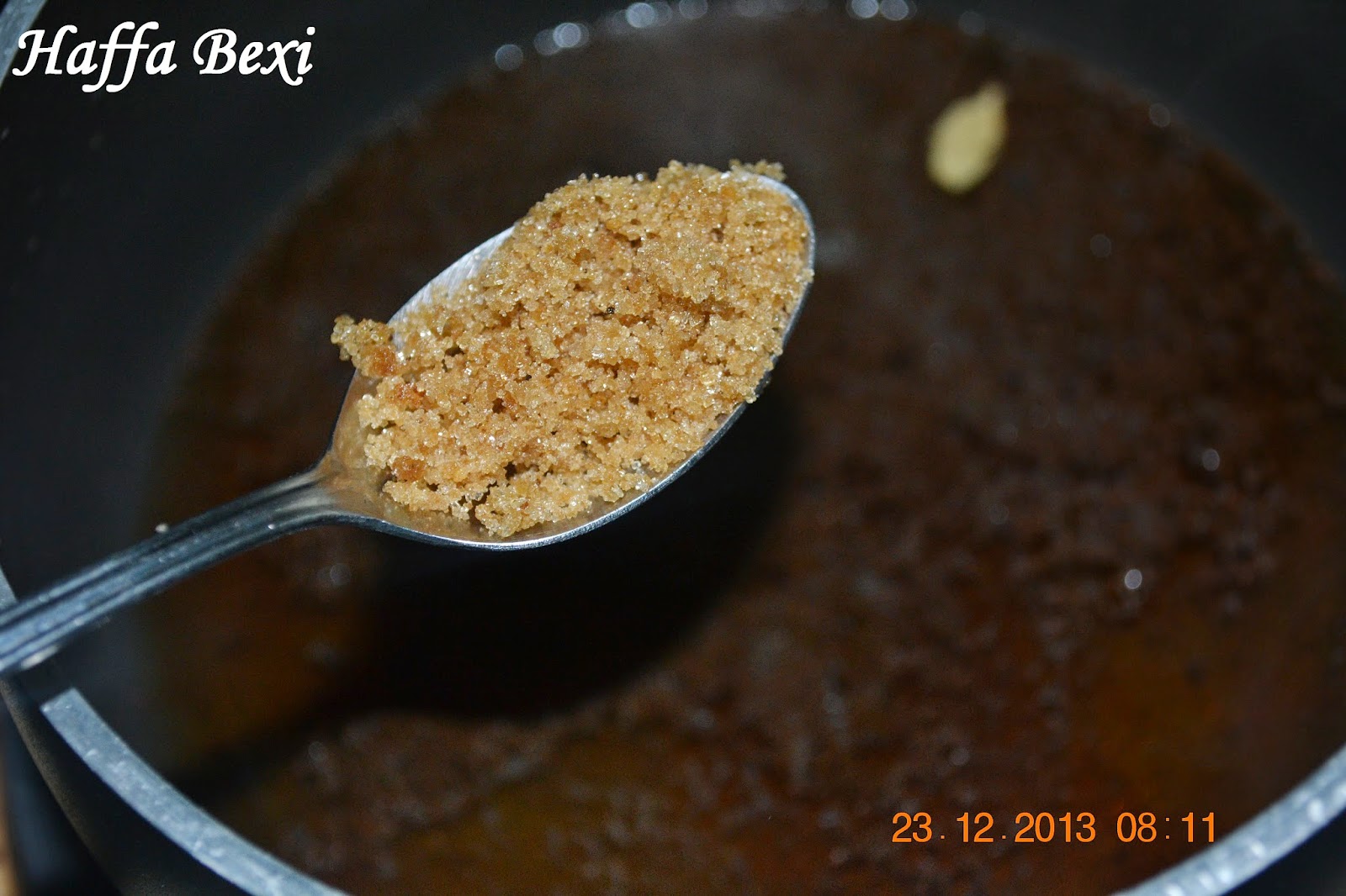 Add water in a pan & bring to boil. Add brown sugar & black tea, followed by cardamom pods.